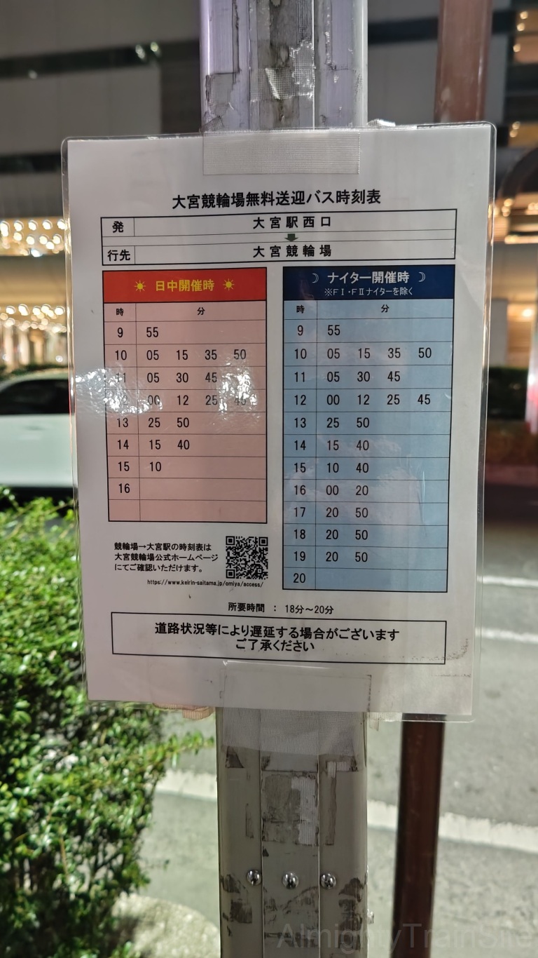 もう1枚時刻表がありましたが、こちらは大宮競輪場へのシャトルバスのようです。