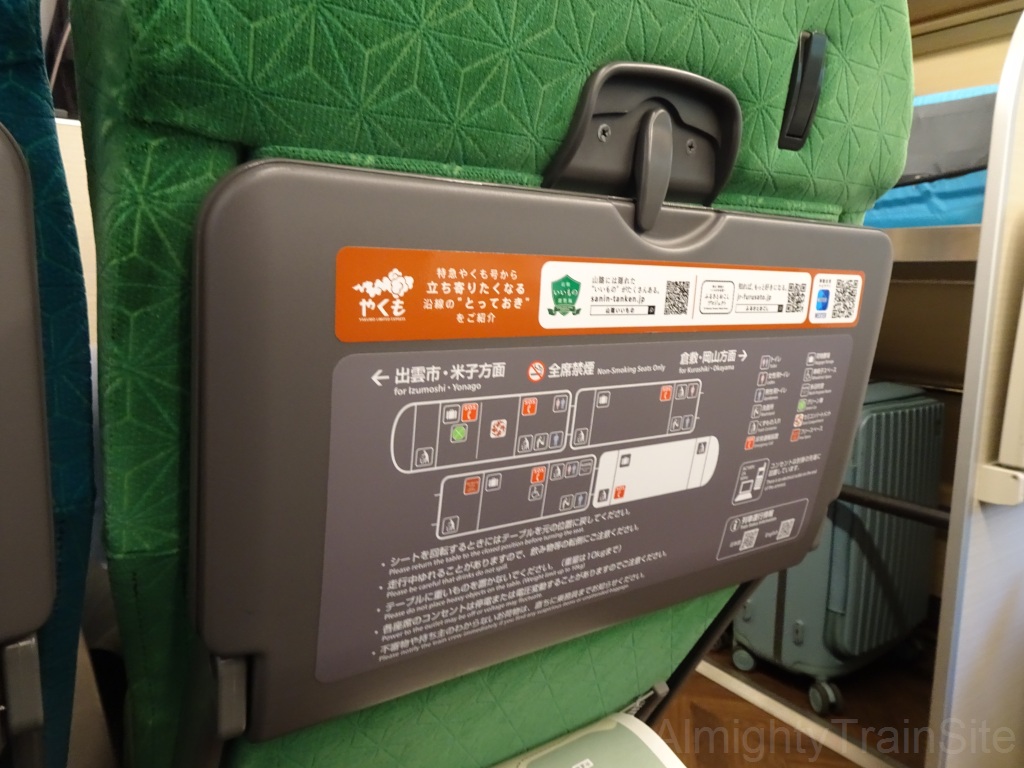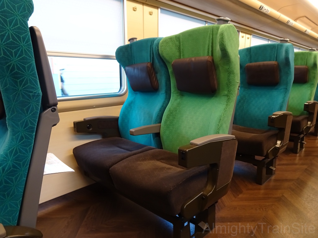 グリーン車は1+2列配置で、各座席にフットレストを装備しています。