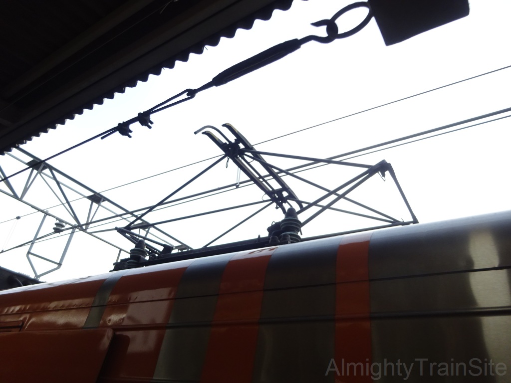 パンタグラフは車体傾斜による架線からの離線を防ぐために、台車とパンタグラフの台座をワイヤーで結び、常にパンタグラフが真上を向く架線追従装置を搭載しています。