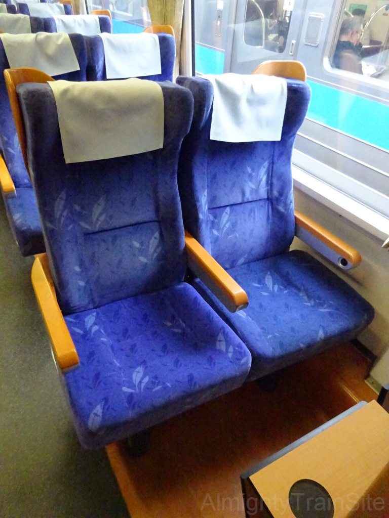 車内はグリーン車が1+2列、普通車2+2列で、シートピッチはグリーン車が1170mm、普通車は980mmとなっています。