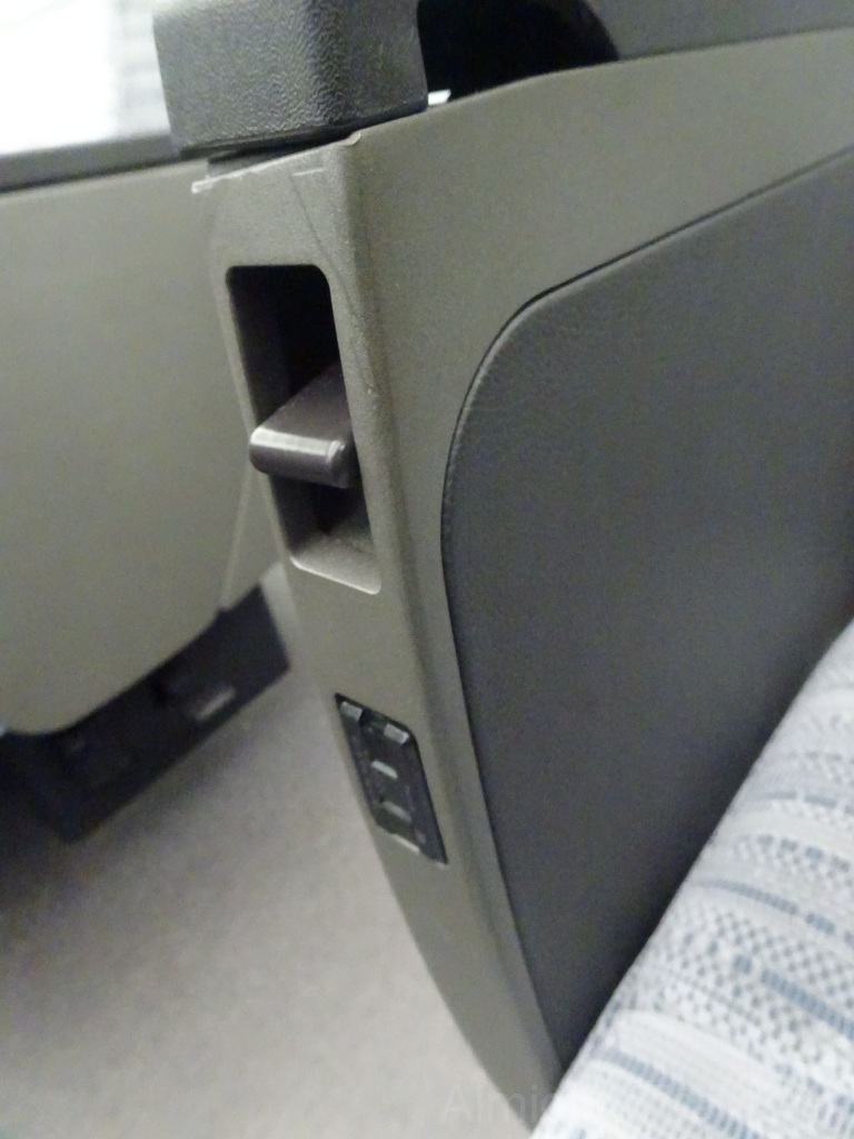 座席リクライニングとロールカーテンは手動式となっています。